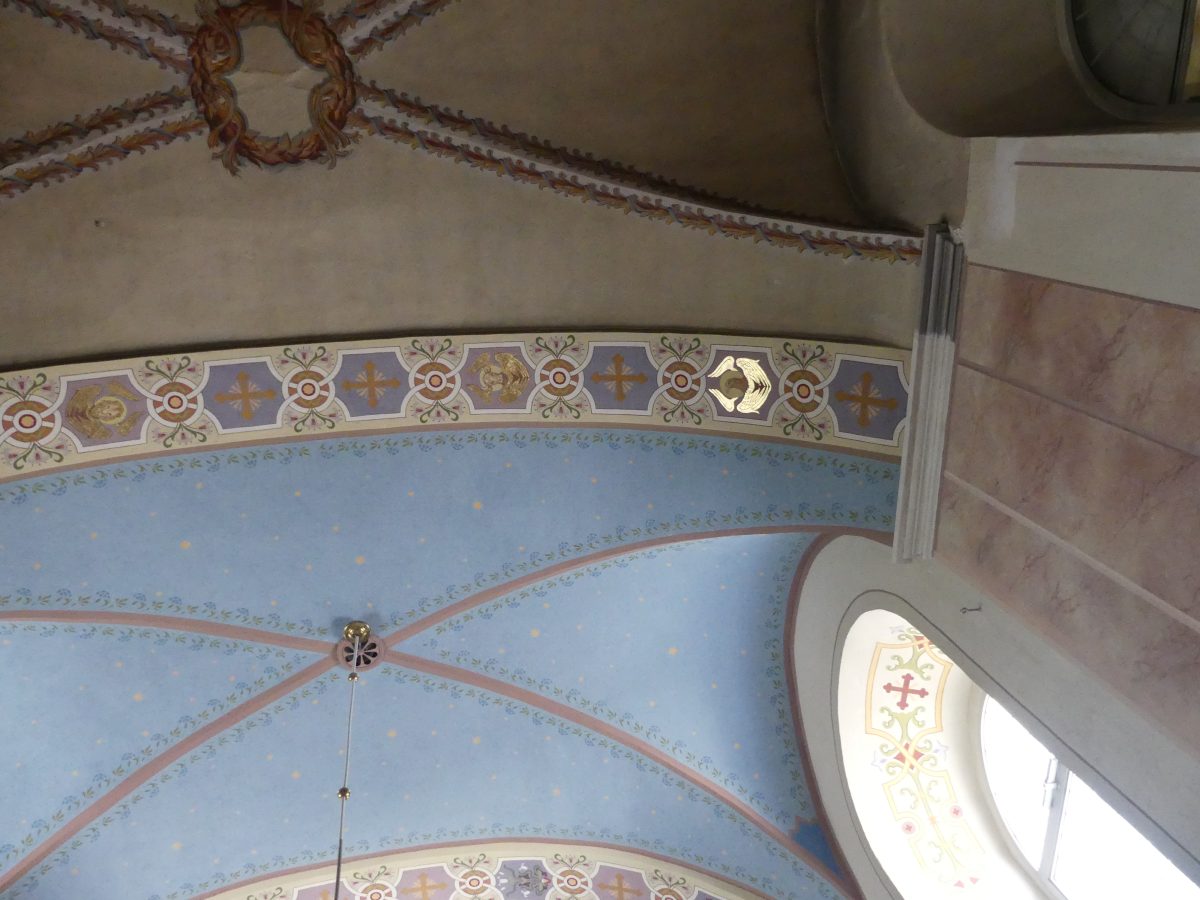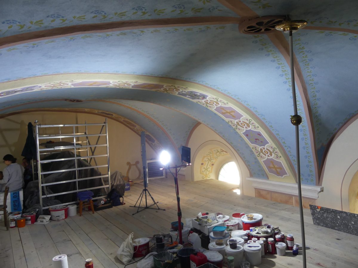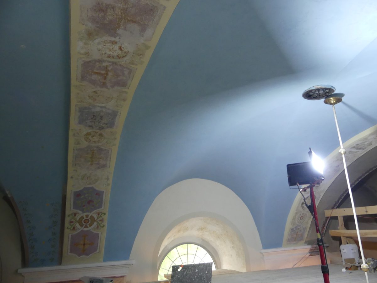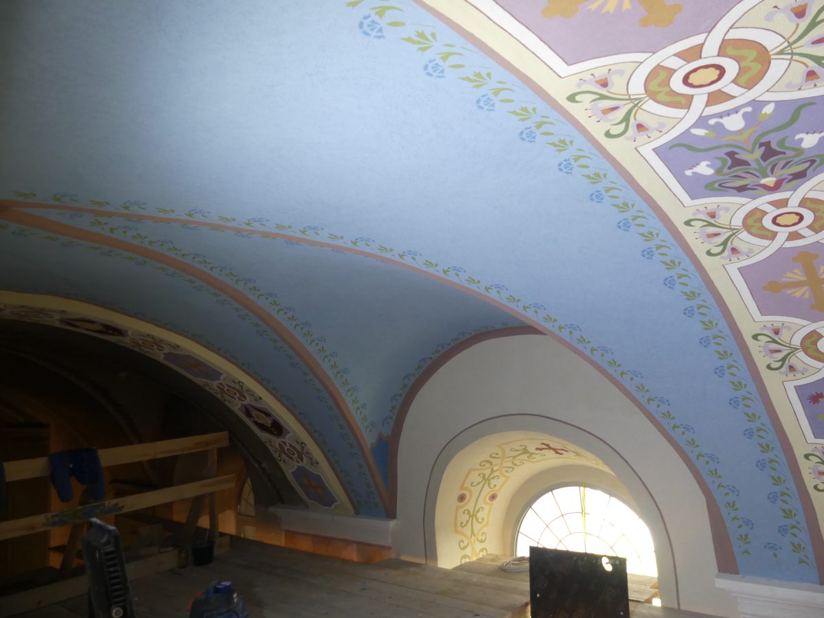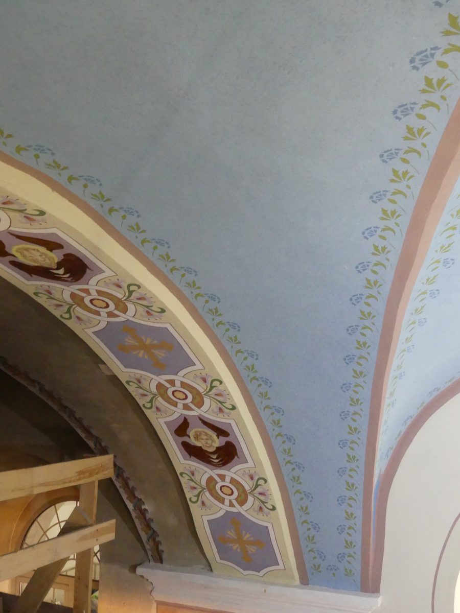 Ponad ½ polichromii świątyni w Krzywczy odzyskała swój blask. 14.08 br. dobiegł końca I etap prac konserwatorskich. W odbiorze prac uczestniczyli przedstawiciele Wojewódzkiego Urzędu Ochrony Zabytków z siedzibą w Przemyślu, Wójt Gminy Krzywcza P. Wacław Pawłowski oraz ks. Janusz Wilusz – proboszcz parafii. Dzięki pozyskanej dotacji przez Gminę z Rządowego Programu Odbudowy Zabytków możliwe było rozpoczęcie inwestycji polegającej na konserwacji i restauracji polichromii sufitu nad chórem oraz ścian nawy głównej. Po przestawieniu rusztowań można podziwiać wielkość i piękno wykonanych prac. Natomiast w chwili obecnej trwają prace w prezbiterium świątyni. Zaprawy tynkarskie ścian bocznych zostały odgrzybione i uzupełnione. Trwa malowane sufitu. Po usunięciu ostatniej warstwy pokazały się bardzo ciekawe i piękne elementy dawnego wystroju. Zakończenie prac nad polichromią jest planowane do końca listopada bieżącego roku.