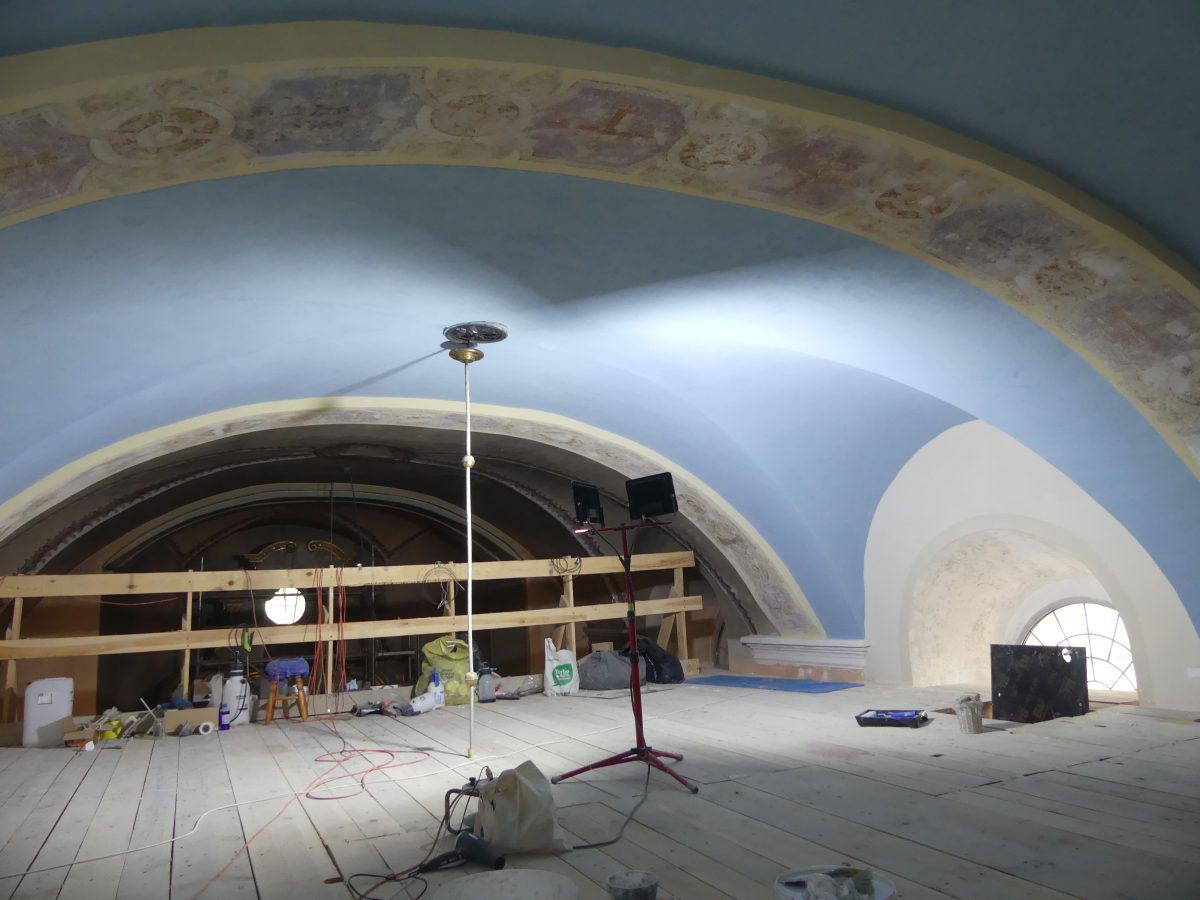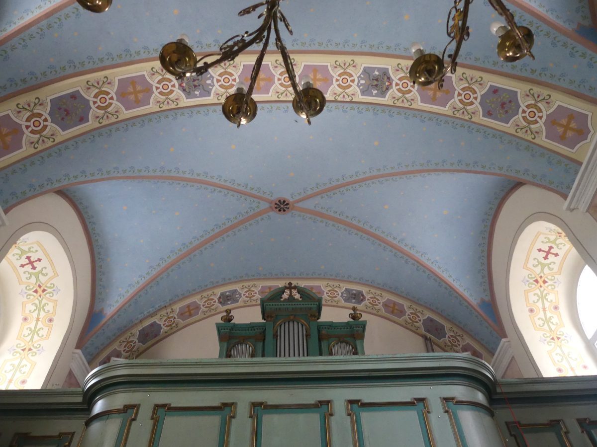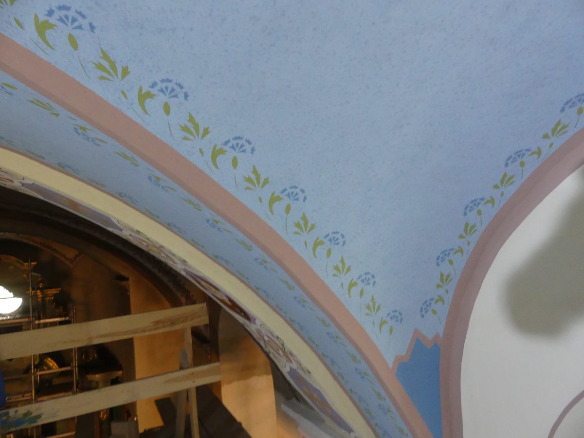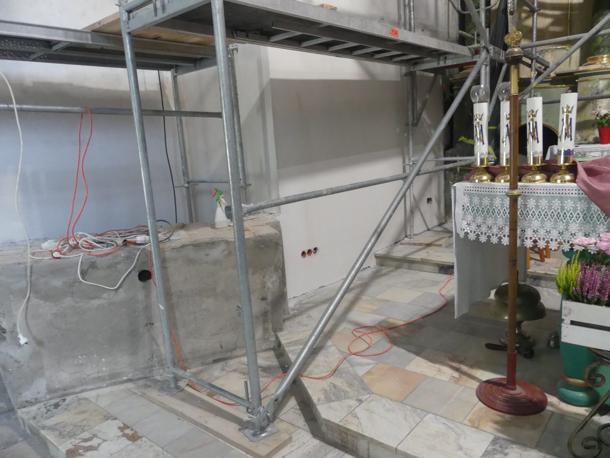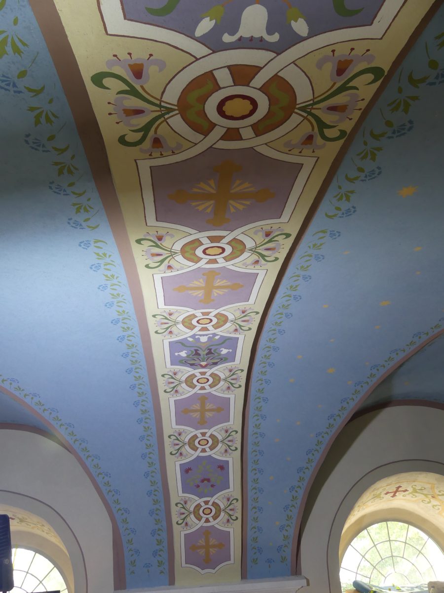 Ponad ½ polichromii świątyni w Krzywczy odzyskała swój blask. 14.08 br. dobiegł końca I etap prac konserwatorskich. W odbiorze prac uczestniczyli przedstawiciele Wojewódzkiego Urzędu Ochrony Zabytków z siedzibą w Przemyślu, Wójt Gminy Krzywcza P. Wacław Pawłowski oraz ks. Janusz Wilusz – proboszcz parafii. Dzięki pozyskanej dotacji przez Gminę z Rządowego Programu Odbudowy Zabytków możliwe było rozpoczęcie inwestycji polegającej na konserwacji i restauracji polichromii sufitu nad chórem oraz ścian nawy głównej. Po przestawieniu rusztowań można podziwiać wielkość i piękno wykonanych prac. Natomiast w chwili obecnej trwają prace w prezbiterium świątyni. Zaprawy tynkarskie ścian bocznych zostały odgrzybione i uzupełnione. Trwa malowane sufitu. Po usunięciu ostatniej warstwy pokazały się bardzo ciekawe i piękne elementy dawnego wystroju. Zakończenie prac nad polichromią jest planowane do końca listopada bieżącego roku.